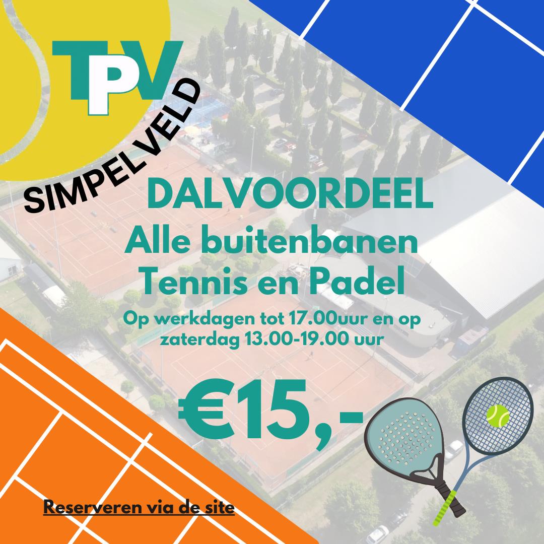 Alle buitenbanen tennis en padel zijn nu tijdens de daluren te boeken voor €15,- per uur.