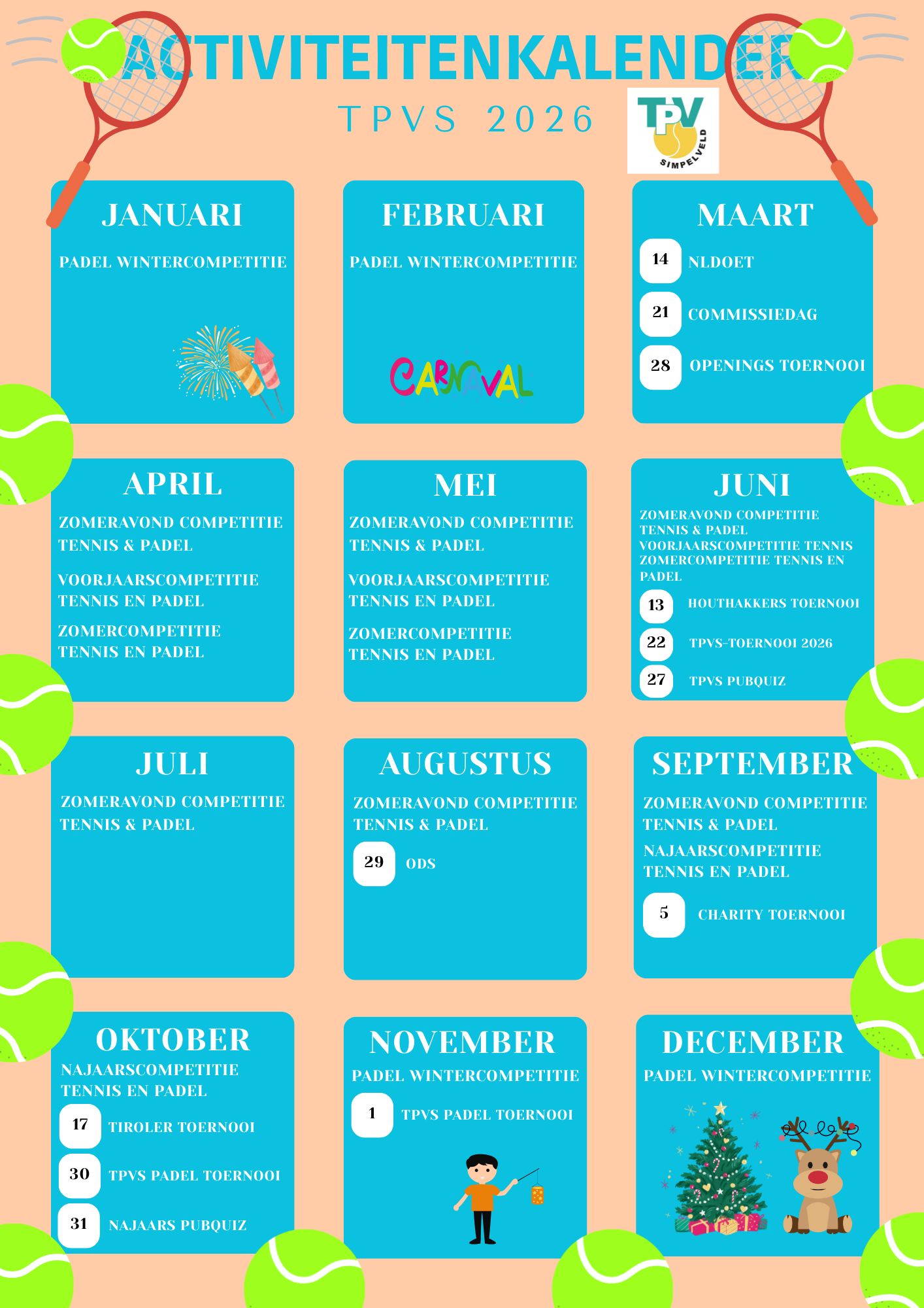 Het nieuwe jaar is nog maar amper begonnen, echter de temperaturen lopen langzaam omhoog, we krijgen iedere dag weer iets meer daglicht🌤️ en zo nadert de winter❄️ bijna haar einde. Dit betekent dat het buitenseizoen bijna nadert en dat de eerste activiteiten weer van start gaan! Hierbij presenteert TPVS dan ook haar activiteitenkalender van 2026! Dit jaar heeft TPVS veel sportieve plannen, niemand zal zich dit jaar dus gaan vervelen. Sportieve hoogtepunten, vaste prikavonden, thematoestanden en een paar heerlijke tradities zorgen ervoor dat verveling in 2026 is geannuleerd!
